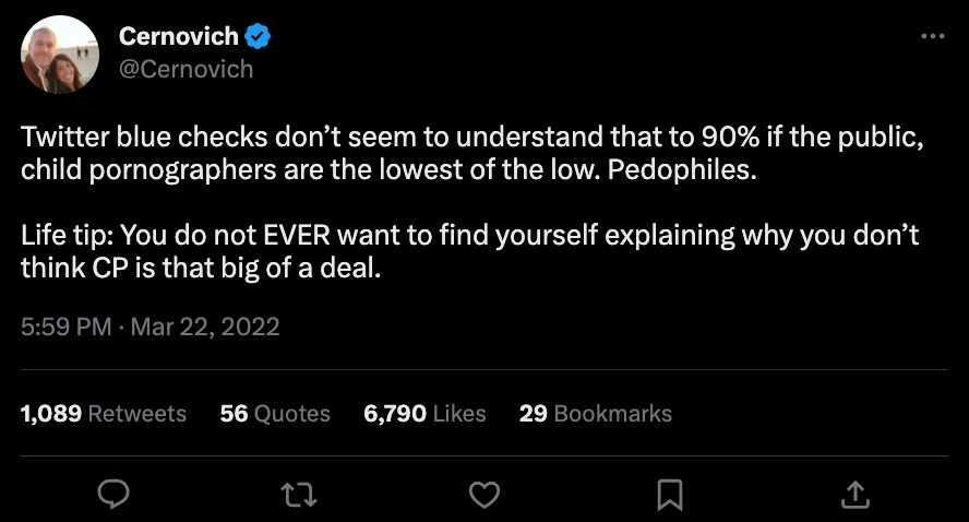 Mike Cernovich — male supremacist, Pizzagate proponent, demon-plagued (verified through Twitter Blue and previously through Twitter's legacy program)