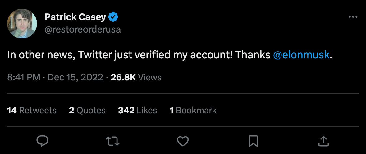 What follows is a non-exhaustive list of right-wingers who are: 1) now verified through Twitter Blue; and 2) who complained about "blue checks."