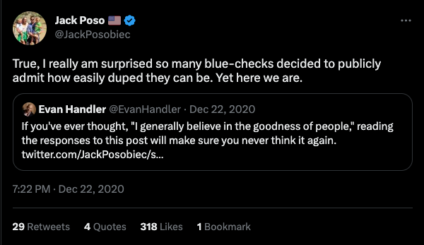 Jack Posobiec — neo-Nazi collaborator, "fmr CBS News" guy, hard-right internet performer, and a musician of some quality (verified through Twitter Blue and previously through Twitter's legacy program)