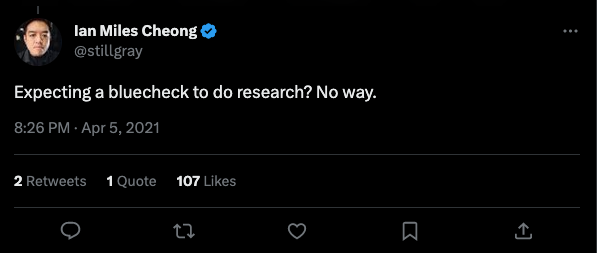 Ian Miles Cheong — Malaysia-based commentator on American politics, 59-years-old until stated otherwise (verified through Twitter Blue and previously through Twitter's legacy verification program)