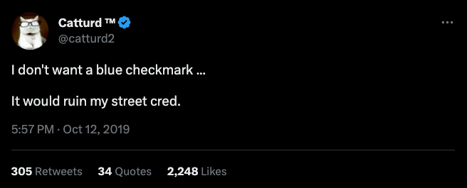 Cat Turd — an elderly man who named his Twitter account after cat shit (verified through Twitter Blue)