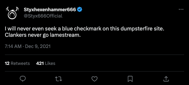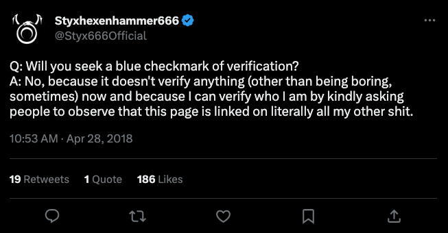 Styxhexenhammer666 — YouTuber, not worth additional research (verified through Twitter Blue)