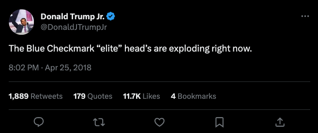 Donald Trump Jr. — no explanation necessary (verified through Twitter Blue and previously through Twitter's legacy verification program)